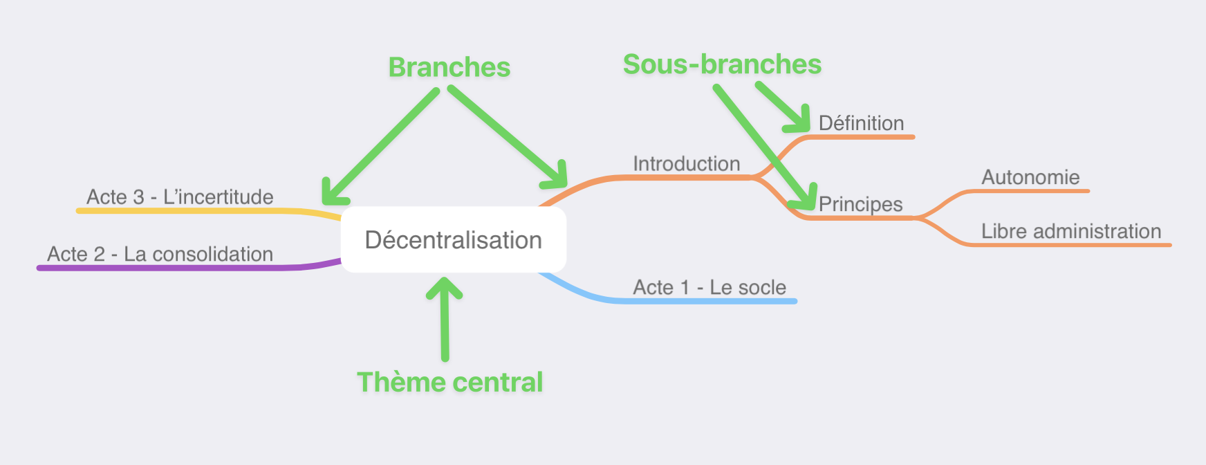 Les cartes mentales permettent de décliner les concepts en branches et sous-branches (qu'on peut plier et déplier) rendant ainsi plus lisibles des notions parfois complexes au premier abord. Cet aspect très visuel permet au cerveau de photographier un cheminement logique, facilitant la compréhension et la stimulation de la mémoire à long terme.